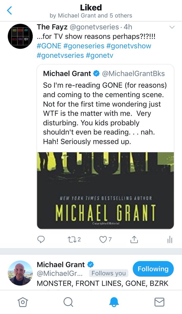 The Fayz On Twitter Michael Grant Liked This Tweet And I M Hoping It S Confirmation That My Guess Was Correct Michaelgrantbks Gone Gonetv Goneseries Gonetvseries Gonetvshow Https T Co Bxqlruvo8c Twitter
